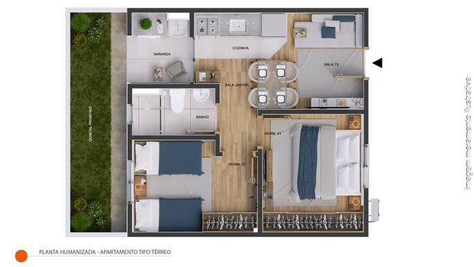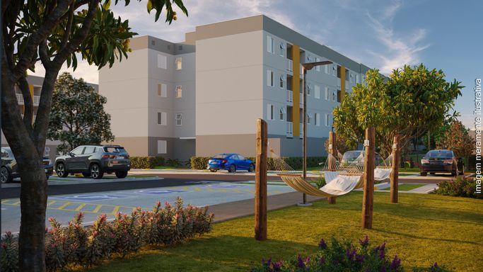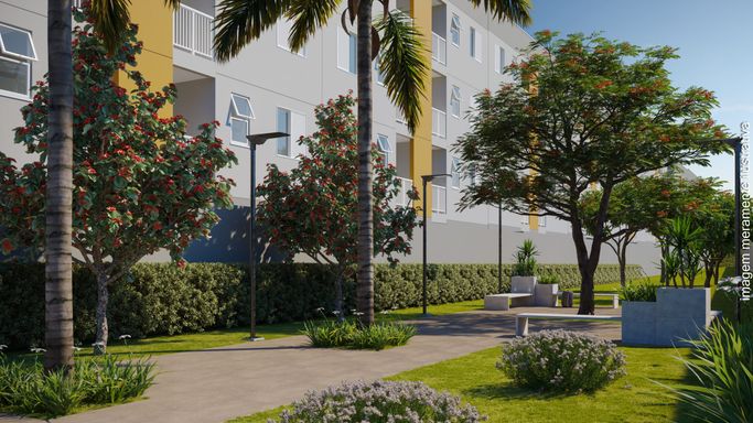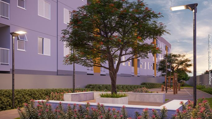 São apartamentos de 41,09 m², com varanda gourmet, ambientes integrados, ventilação natural nos banheiros e infraestrutura para ar-condicionado, inseridos em um condomínio fechado com portaria 24h e mais de 18 itens de lazer, incluindo piscinas adulto e infantil, espaço fitness, playground, pet place, quiosques, redário, web garden, pista de saúde e muito mais.