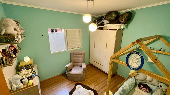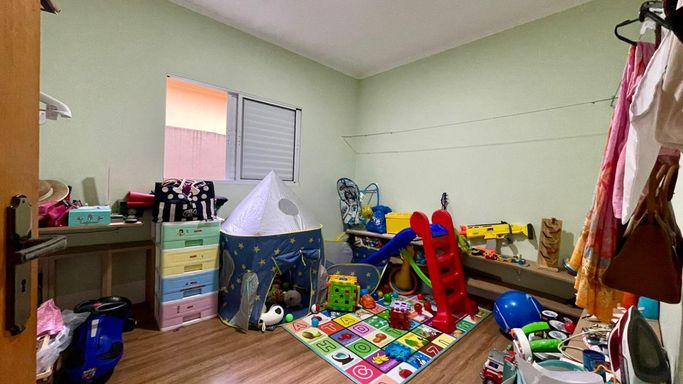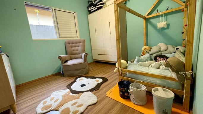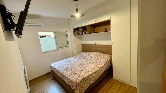 3 quartos, sendo 1 suíte espaçosa com armários planejados e ar condicionado, garantindo praticidade e bem-estar.