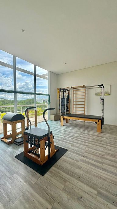 Academia moderna, sala de Pilates e Sauna.